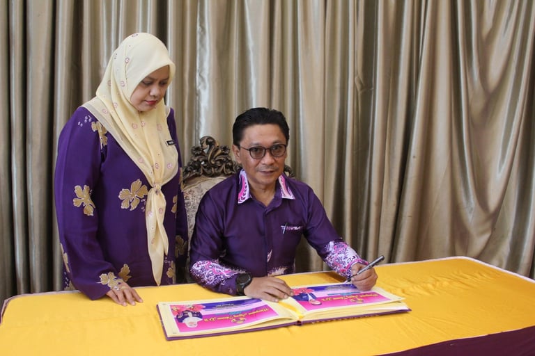 - Firuz menandatangani buku buku kehadiran ditemani pengerusi puspanita